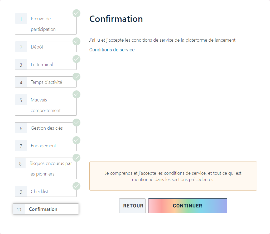 Félicitations ! Vous avez enclenché le processus pour activer votre validateur.