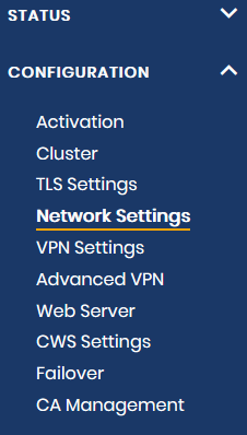 We need to make a few network changes, for this please navigate to Configuration > Network Settings