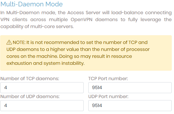 Please find the "Multi-Daemon Mode" section, and edit both ports away from the default ports. This is for security purposes. These ports can be the same number. I picked 9514, but this is an example only, I recommend choosing your own ports.
