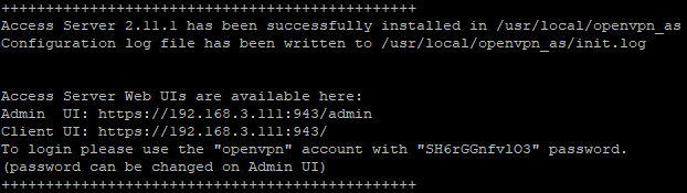 Hooray, you've just installed OpenVPN access server! Pay attention to this part of the debug, it contains valuable information.