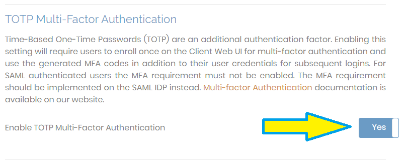 Please find the "TOTP Multi-Factor Authentication" setting and toggle it