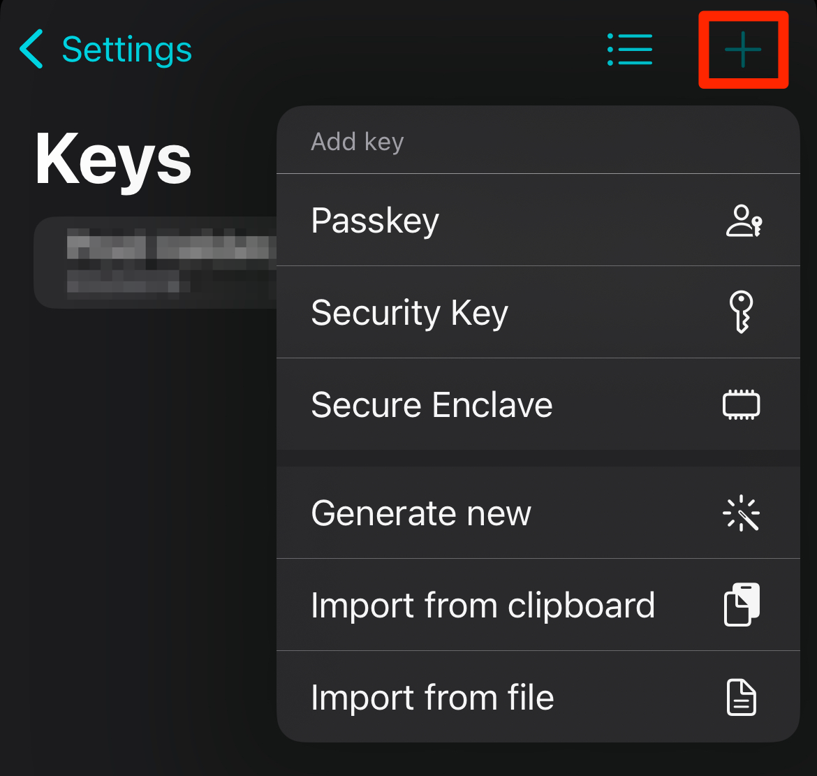 iCloud sync can be turned off if you don't want your SSH keys and passwords to be stored in iCLoud.